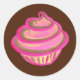 A pink swirl cupcake decorates this sticker. Use these cupcake stickers for a birthday party, a bakery, packaging, gift, card, envelopes, envelope seal, invitations, crafts, scrapbooks,etc....The design is from original art.