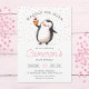 Pink Cupcake Penguin Celebration, kid's Birthday Invitation