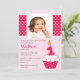 Start your party off right with our cute pink cupcake with a big number one birthday candle Photo Birthday Invitation. So cute and perfect for you daughters first birthday party. Just personalize with your information and your photo and you're all set to go! Matching items including birthday postage stamps, favour stickers, thank you cards & thank you stickers are also available in our shop. ©Goodness & Fun