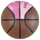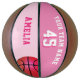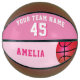 Pink Custom Basketball with Team Name Number. The design has a vivid pink basketball on the side and pink background for a girl basketball player. Perfect gift for girl basketball player, teammates, coach,... Personalize it with your basketball team name, player number and player name
