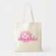 This canvas bag has a pink button design with the words 'cute as a button' on it.