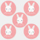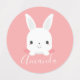 This design features cute little white bunny rabbit on pink background with personalized name in modern script font style.