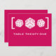 This D20 Dice Gamer Wedding Table Number Postcard in magenta is perfect for the nerdy couple who fell in love over a shared interest in role playing games and are planning a similarly themed wedding. This offbeat design features a simple and minimalist trio of twenty-sided die. Easy to customize, simply add the appropriate table number(s) in the text field provided. Click "Customize It" to find more personalization options.