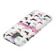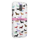 A great Galaxy S5 case that is perfect for any dog lover. It features a white background with little weenie dogs all over it. A pink stripe runs through the centre. You customize the text in the centre.