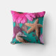 Pink Daises And Seahorse With Starfish Throw Pillow