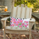 Pink Daisies / Asters Bouquet & black dots Outdoor Pillow