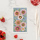 An original modern design featuring colourful bunches of pink, blush and peach African Daisies, aka Gazania, on a blue background.