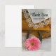 Write a message of thankfulness and appreciation for gifts received after your rural farm style engagement barn party, bridal shower or marriage ceremony and reception with the charming Pink Daisy and Lace Country Western Wedding Flat Thank You Note. These relaxed and elegant custom ranch theme thank you notes feature a quaint floral photograph of a light pink gerber daisy flower blossom, rusty horseshoe, white pearl necklace and a white bridal veil with a vintage lace trimmed white hankie and weathered brown barn wood background. Perfect inspo for a rustic chic cowgirl bride.