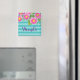 A pretty thank you magnet to show your appreciation. Beautiful pink daisy flowers with a white outline and bright yellow centres set on a pattern of horizontal turquoise blue stripes.