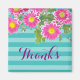 Pink Daisy Flowers on Turquoise Stripes "Thanks" Magnet