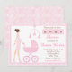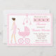 Pink Damask Brunette Expecting Girl Baby Shower Invitation