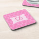 These stylish pink damask coasters personalized with a monogram initial are great for entertaining. This modern design pattern features pink and light pink damask art pattern. A pink emblem provides an area for the custom monogram. The damask original art by Phyllis Dobbs is very stylish and sophisticated as well as very trendy. The pink damask design is on a lighter layered shade of the pink. These coasters coordinate with other products in this store and are fully customizable.