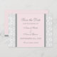 Wedding save the date announcement postcards in elegant light blush pink, grey and white floral damask pattern, stylish and fully customizable with your wedding details. Also available in many other products for the wedding party.
