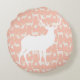 This pretty deer design round pillow is perfect for anyone who loves deer, animals, wildlife,and fun designs! Features several small rustic white deer silhouettes on a background of pastel pink with a big white silhouette doe on front, buck on back. This deer pillow is perfect for the living room, den, family room, family cabin on the lake, and of course it makes a great gift.