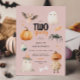 Célébrez le deuxième anniversaire de votre petit avec une touche de charme éffrayant ! Cette adorable invitation à l'anniversaire "Elle est deux éffrayantes" présente un délicieux éventail de personnages d'Halloween mignons, y compris des fantômes amicaux, une mignonne chauve-souris, des citrouilles et des araignées. La douce couleur rose pastel et les illustrations fantaisistes donnent un ton festif mais doux, parfait pour un premier anniversaire.