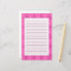 Simple pink tone stationery with a background border pattern of pink chequered diamonds. Writing area in centre is lined and semi-transparent with background pattern showing through.
