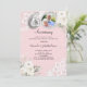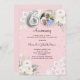 For an elegant and romantic 60th wedding anniversary. A blush pink coloured background decorated with white florals, roses, faux diamonds and white lace. Personalize and add your photo, names and details.