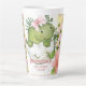 Give a gift that's both practical and a cherished keepsake with this personalized latte mug! This charming mug features a sweet watercolor hatching dinosaur wearing a cute pink bow, surrounded by soft greenery and a pink flower. The design is complemented by a playful pink background with a repeating green dino footprint pattern. It is fully customizable with the mommy-to-be's name and the baby shower date, making it a thoughtful and unique gift. This durable mug is perfect for coffee, tea, or cocoa and is a wonderful way to commemorate the special day. It perfectly matches our "Girl Can Roar Too" collection and is a delightful keepsake for the new mom!