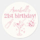 Pink Disco Birthday Party Modern Hand Drawn Doodle Classic Round Sticker