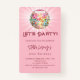 A girly and feminine 21st (or any age) party invitation. A blush pink background. Decorated with a colourful disco ball. Text: Let's Party! Personalize and add a name and party details.