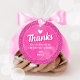 Add a sweet and stylish touch to your party favours with this pink glitter round thank you tag! Easily add your child’s name and age. This tag matches our Pink Doll Fashion Birthday Collection perfectly. Ideal for doll-themed parties, these circular tags are great for tying onto treat bags, party favours, or thank-you gifts. Pretty, playful, and oh-so-glam!