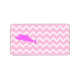 A bright pink dolphin cartoon picture on a pale pink zig zag background pattern.