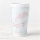 Enjoy your latte or morning coffee with a Pink Dolphin Personalized Latte Mug. Mug design features a vibrant metallic dolphin against a muted seascape adorned elegant scrolls with an area to personalize with your name. Additional gift items available with this design as well as a variety of colours.