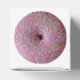 A mouth-watering donut, full of delicious sweetness, covered in pink icing (frosting) and lots of colorful sprinkles