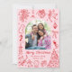 Cette année tendance dans la carte de révision présente des illustrations fantaisistes dessinées à la main dans une palette de couleurs rouge et rose avec une police manuscrite. Il y a de la place pour une photo à l'avant et deux à l'arrière. Il est parfait pour un accueil de vacances moderne et mettre à jour la famille et les amis avec vos dernières nouvelles. Associez-le à tout ce qui se trouve dans la collection DOODLE pour un look cohésif.