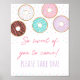This adorable table sign would be a great addition to a doughnut themed birthday party. Place the sign in a frame and display at your party favour table. The design features our hand drawn doughnuts in pastel colours with sprinkle confetti.