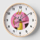 Clock with illustration of head of a cute little pink flying dragon, in pink circle, cute fantasy / fairy-tale design for kids by Maxi Harmony