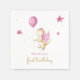 Adorable girls first birthday party napkins with an illustration of a little baby dragon holding a pink balloon. Great complement to you party decor. Illustrated and designed by Patricia Alvarez.