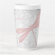 Enjoy your latte or morning coffee with a Pink Dragonfly Personalized Latte Mug.  Mug design features a colourful dragonfly, a soft white leafy vine against a light grey grunge damask background with an area to personalize with your name.  Additional gift items available with this design as well as a variety of colours.