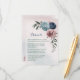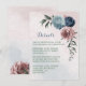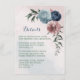 Beautiful botanical wedding enclosure card featuring pink, dusty blue and navy blue flowers with green leaves.