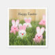 Cute pink and white fuzzy Easter bunnies in green grass with for Happy Easter