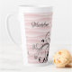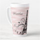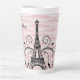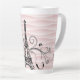 Enjoy your latte with a personalized Pink Eiffel Tower Flourish latte mug. Latte mug design features the Eiffel Tower adorned with elegant flourishes against a pink wavy background. Additional colours available with this design as well.