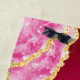 Create a unique girly beach towel that features an elegant pink marble design with faux gold glitter. Use the template to type your initial letter and first name.