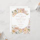 Pink Elegant Vintage Floral QR Code Photo Wedding Invitation features a beautiful bouquet of watercolor wildflowers in shades of ivory, blush, mauve, sage, peach and gold