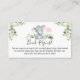 Sweet girl's watercolor elephant baby shower book request enclosure card featuring a cute elephant, a baby pink balloon and some eucalyptus foliage.  Ideal for a little girl's elephant themed baby shower.