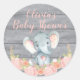 This trendy baby elephant sticker is designed with a rustic wood background and watercolor flowers. The pink elephant is nested on a bed of watercolor floral design elements.