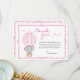 Send a heartfelt note of gratitude with this charming baby shower thank you card, featuring a sweet watercolor elephant floating in a soft pink hot air balloon. Perfect for a baby girl celebration, this design adds a gentle, whimsical touch to your post-party appreciation. Customize the message inside to reflect your unique voice and add a personal sign-off from the mom-to-be (or parents-to-be). Whether you're thanking guests for their thoughtful gifts or simply for being part of the special day, this card makes every “thank you” feel extra meaningful.