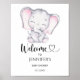 Pink Elephant baby shower welcome Poster