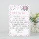 The design consists of a pink and elephant theme with polka dots.