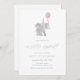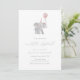 A sweet watercolor elephant in blush tones with a party hat and pink balloon — the perfect invitation for your baby girl’s first birthday. Simple, modern, and fully editable for easy personalization.