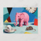 Pink Elephant Mouse Broken Teacup Clock Surreal Postcard