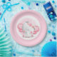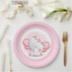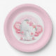 Paper plates in 2 sizes feature an adorable baby elephant with pink ears and headband of flowers. Fun for girl baby shower, girl birthday party or any special occasion. Also available in blue and green. MATCHING items in our store.