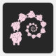 This is a nice fun illustration of pink elephants in a spiral design. This pink elephant design is on a black background.