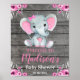 Pink Elephant Welcome Sign, Girl Rustic Shower Poster