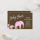 Pink Elephants Brown Trendy Modern Baby Shower Invitation