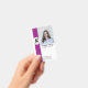 Bold and modern pink employee ID badge featuring a large customizable photo, your name, title, logo, and scannable QR code. Includes printed ID number and return address on the back. Great for consultants, staff members, and professional workspaces.
